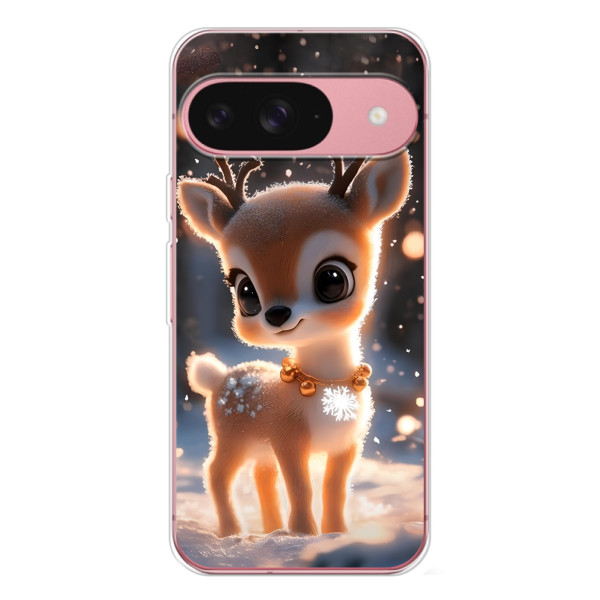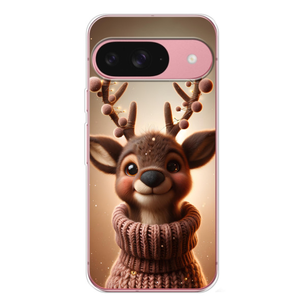 Зимняя коллекция принтов с тёплым сказочным настроением: Блестящий оленёнок, Олень в свитере, Олень с носом, Олень с шарфом, Олень среди подарков, Оленёнок в лесу, Оленёнок среди гирлянд, Оленёнок — выбери свой любимый дизайн для Google Pixel 10 Pro (Пиксель 10 Про) и добавь праздничной магии каждый день.