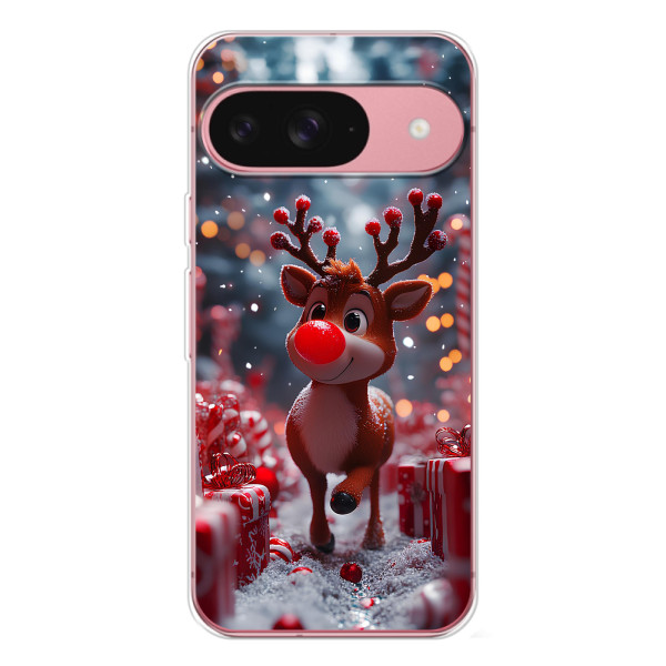 Зимняя коллекция принтов с тёплым сказочным настроением: Блестящий оленёнок, Олень в свитере, Олень с носом, Олень с шарфом, Олень среди подарков, Оленёнок в лесу, Оленёнок среди гирлянд, Оленёнок — выбери свой любимый дизайн для Google Pixel 10 (Пиксель 10) и добавь праздничной магии каждый день.