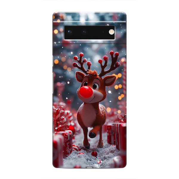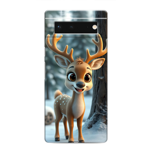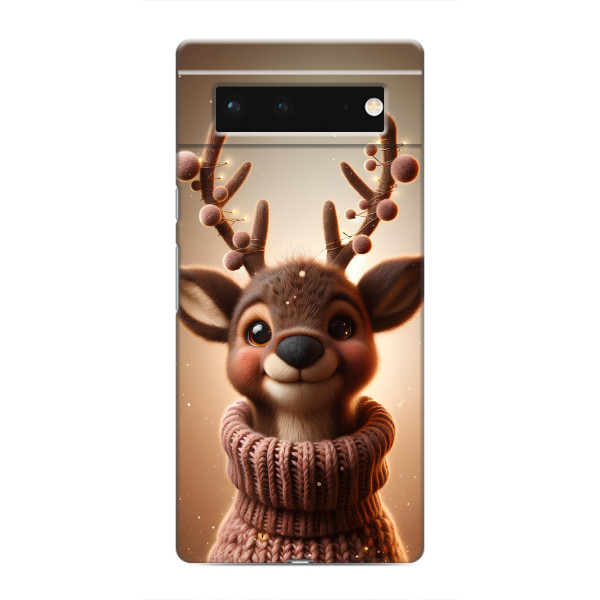 Зимняя коллекция принтов с тёплым сказочным настроением: Блестящий оленёнок, Олень в свитере, Олень с носом, Олень с шарфом, Олень среди подарков, Оленёнок в лесу, Оленёнок среди гирлянд, Оленёнок — выбери свой любимый дизайн для Google Pixel 6 (Гугл Пиксель 6) и добавь праздничной магии каждый день.