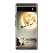 Новогодние, Праздничные Чехлы для Google Pixel 6a - 2024 год - Санта на луне