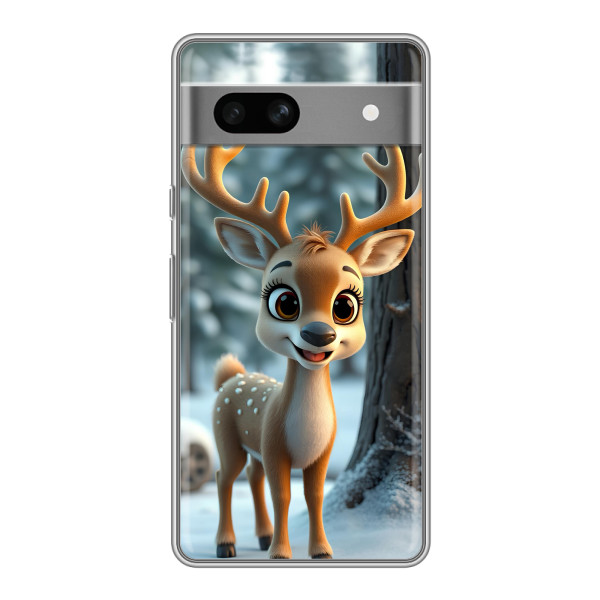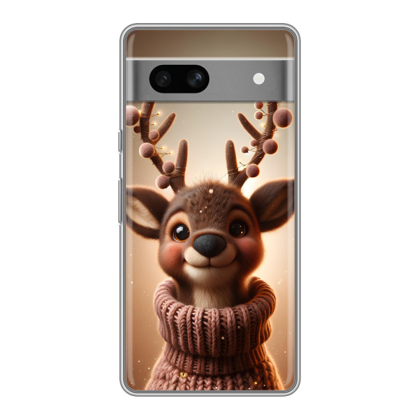 Зимняя коллекция принтов с тёплым сказочным настроением: Блестящий оленёнок, Олень в свитере, Олень с носом, Олень с шарфом, Олень среди подарков, Оленёнок в лесу, Оленёнок среди гирлянд, Оленёнок — выбери свой любимый дизайн для Google Pixel 7A (Гугл Пиксель 7А) и добавь праздничной магии каждый день.