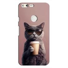 Чехол с принтом стильные животные для Гугл Пиксель - Кот с кофе
