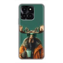 Чехол с принтом стильные животные для Хонор Х6а - Лось с кофе