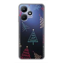 Зимние Чехлы для Инфиникс ХОТ 30i - прозрачный фон - Рождественские елки