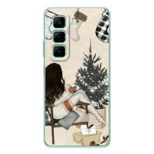 Рождественские, Праздничные Чехлы для Хот 50 Про - Девушка с елкой