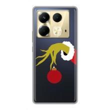 Зимние Чехлы для Инфиникс Ноут 40 - прозрачный фон - Гринч с игрушкой