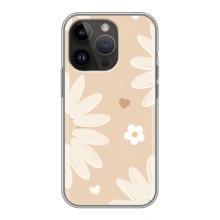 Чехол с цветочным принтом на Айфон 14 Про - Бежевые цветы