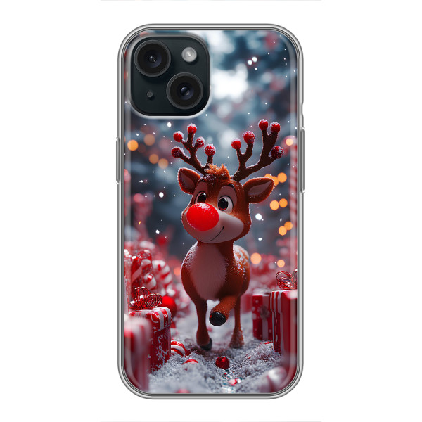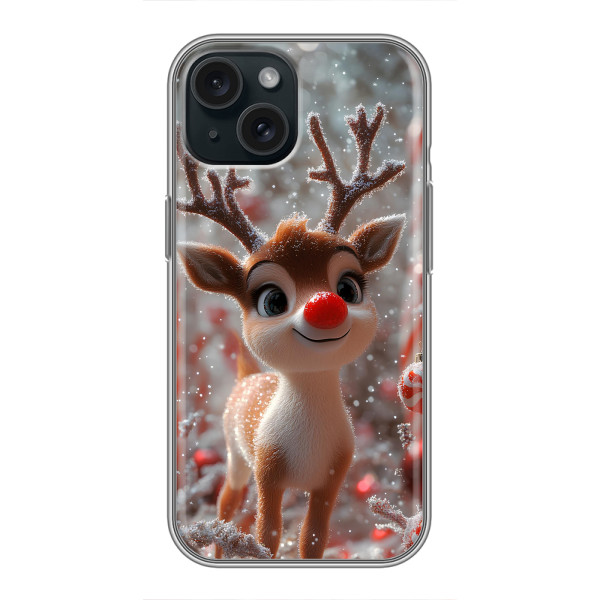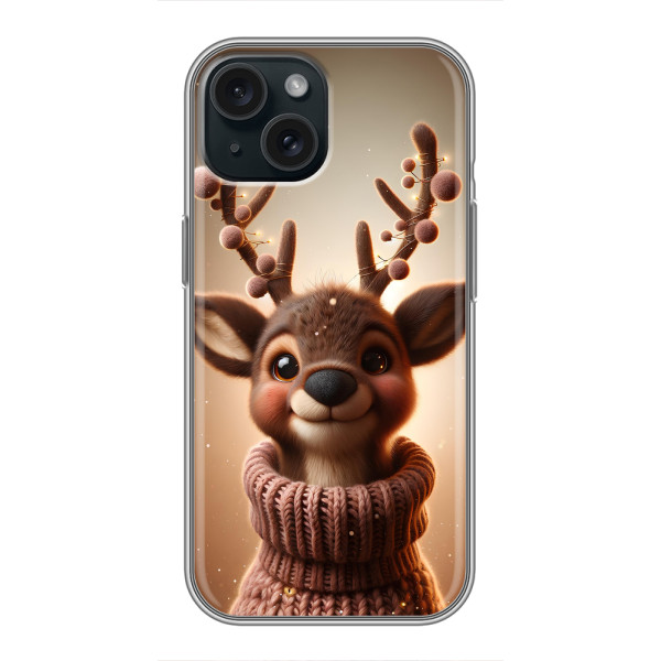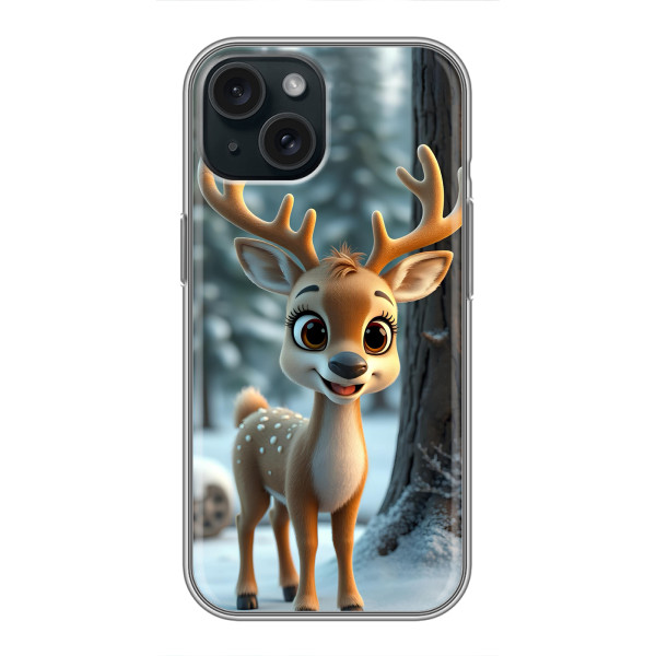 Зимняя коллекция принтов с тёплым сказочным настроением: Блестящий оленёнок, Олень в свитере, Олень с носом, Олень с шарфом, Олень среди подарков, Оленёнок в лесу, Оленёнок среди гирлянд, Оленёнок — выбери свой любимый дизайн для iPhone 14 (Айфон 14) и добавь праздничной магии каждый день.