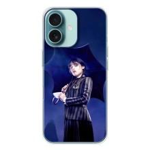 Чехлы Венсдей на iPhone 16 Уэнсдей (AlphaPrint) - Уэнздей с зонтом