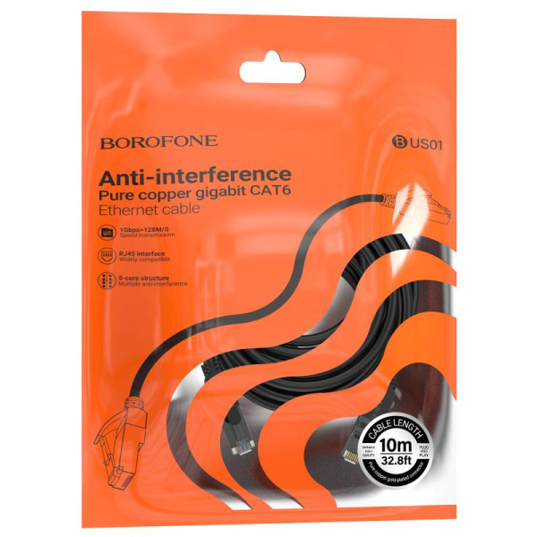 Кабель (патч-корд) Borofone BUS01 Category 6 Gigabit (10m)