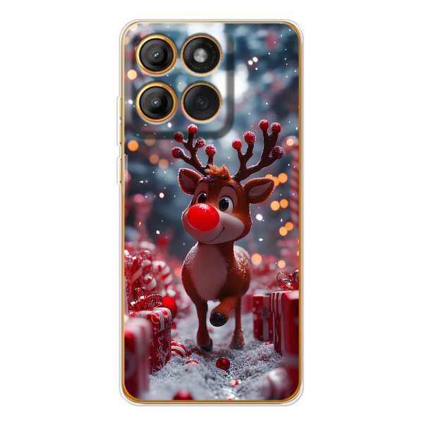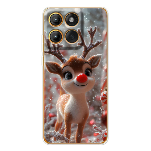 Зимняя коллекция принтов с тёплым сказочным настроением: Блестящий оленёнок, Олень в свитере, Олень с носом, Олень с шарфом, Олень среди подарков, Оленёнок в лесу, Оленёнок среди гирлянд, Оленёнок — выбери свой любимый дизайн для Motorola Edge 60 Pro (Эдж 60 Про) и добавь праздничной магии каждый день.