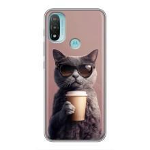 Чехол с принтом стильные животные для Мото Е40 - Кот с кофе