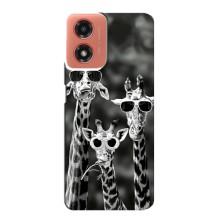 Силиконовый чехол с КАРТИНКАМИ лето для Motorola MOTO G04 (AlphaPrint) - Жирафы в очках