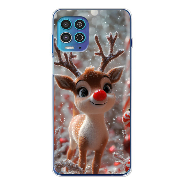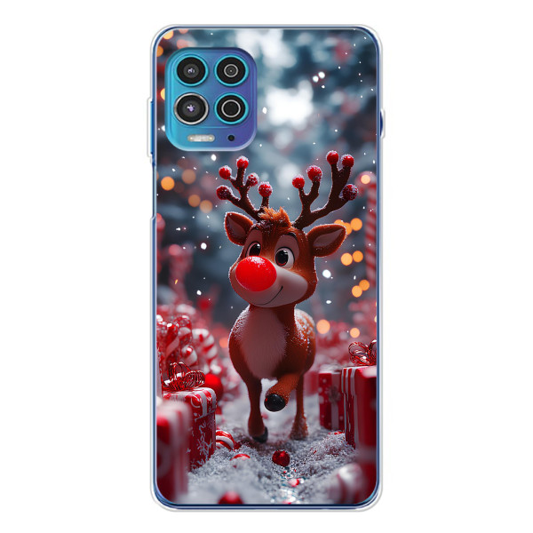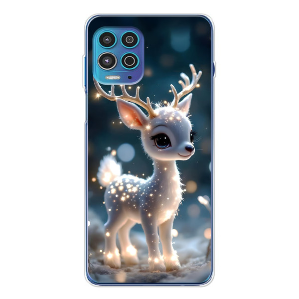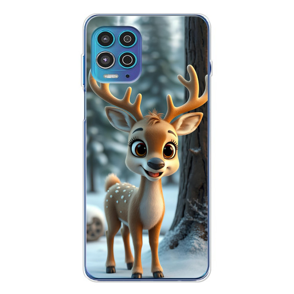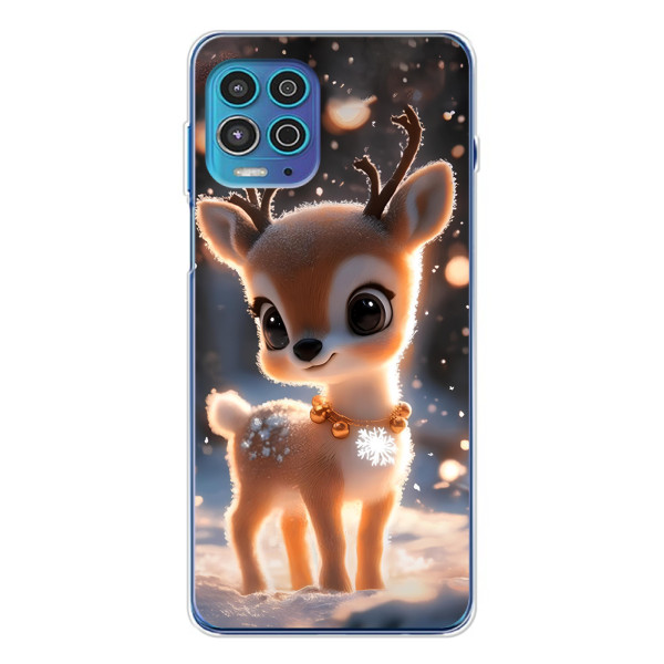 Зимняя коллекция принтов с тёплым сказочным настроением: Блестящий оленёнок, Олень в свитере, Олень с носом, Олень с шарфом, Олень среди подарков, Оленёнок в лесу, Оленёнок среди гирлянд, Оленёнок — выбери свой любимый дизайн для Motorola MOTO G100 Pro (Мото Джи100 Про) и добавь праздничной магии каждый день.