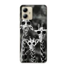 Силиконовый чехол с КАРТИНКАМИ лето для Motorola MOTO G14 (AlphaPrint) - Жирафы в очках
