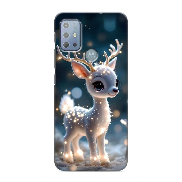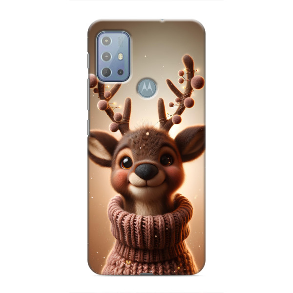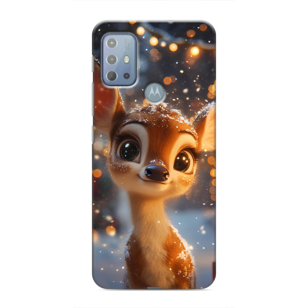 Зимняя коллекция принтов с тёплым сказочным настроением: Блестящий оленёнок, Олень в свитере, Олень с носом, Олень с шарфом, Олень среди подарков, Оленёнок в лесу, Оленёнок среди гирлянд, Оленёнок — выбери свой любимый дизайн для Motorola MOTO G20 (Мото G20) и добавь праздничной магии каждый день.