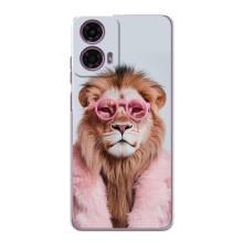 Чехол с принтом стильные животные для Моторола Мото Джи 24 Павер - Лев в очках