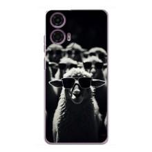 Чехол с принтом стильные животные для Моторола Мото Джи 24 Павер - Овечка в очках