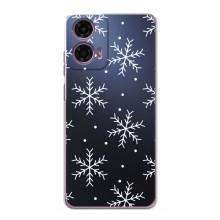 Зимние Чехлы для Моторола Мото Джи 24 Павер - прозрачный фон - Белые снежинки