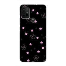 Чехол с розовым рисунком для Motorola MOTO G30 - Розовые цветы на черном