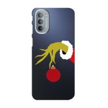 Зимние Чехлы для Мото G31 - прозрачный фон - Гринч с игрушкой