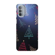 Зимние Чехлы для Мото G31 - прозрачный фон - Рождественские елки