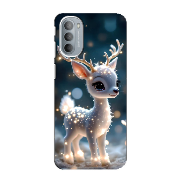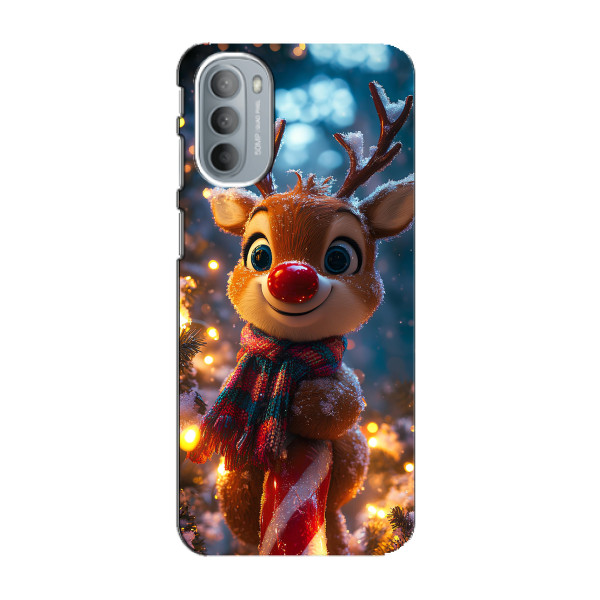 Зимняя коллекция принтов с тёплым сказочным настроением: Блестящий оленёнок, Олень в свитере, Олень с носом, Олень с шарфом, Олень среди подарков, Оленёнок в лесу, Оленёнок среди гирлянд, Оленёнок — выбери свой любимый дизайн для Motorola MOTO G41 (Мото G41) и добавь праздничной магии каждый день.