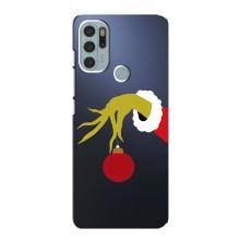 Зимние Чехлы для Мото G60s - прозрачный фон - Гринч с игрушкой