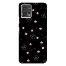 Чехол с розовым рисунком для Motorola MOTO G72 - Розовые цветы на черном