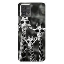 Силиконовый чехол с КАРТИНКАМИ лето для Motorola MOTO G72 (AlphaPrint) - Жирафы в очках