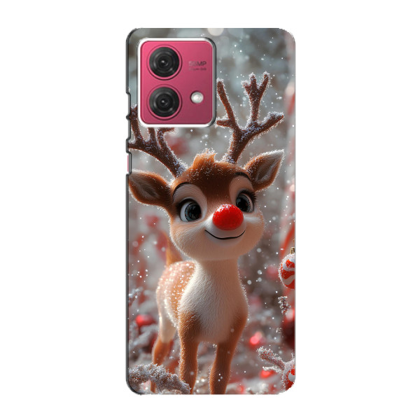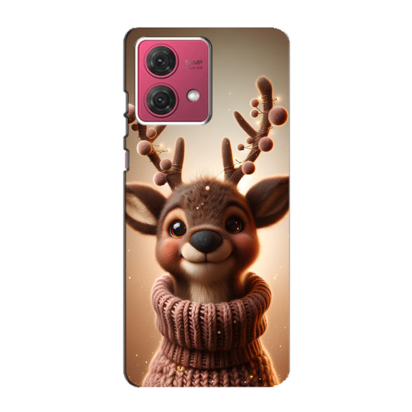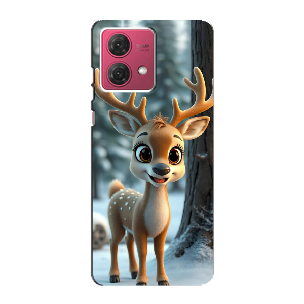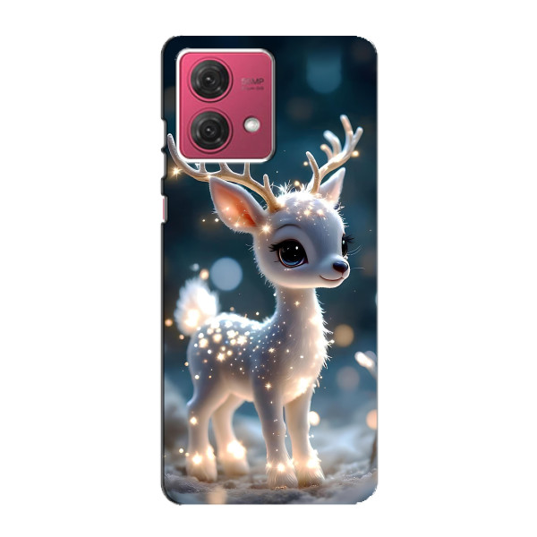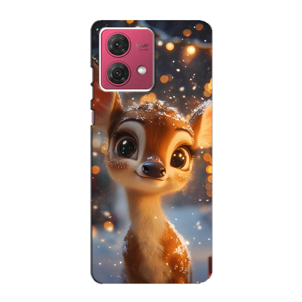 Зимняя коллекция принтов с тёплым сказочным настроением: Блестящий оленёнок, Олень в свитере, Олень с носом, Олень с шарфом, Олень среди подарков, Оленёнок в лесу, Оленёнок среди гирлянд, Оленёнок — выбери свой любимый дизайн для Motorola MOTO G84 (МОТО джи84) и добавь праздничной магии каждый день.