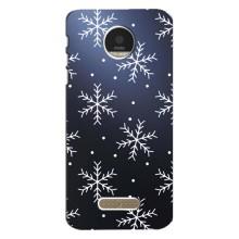 Зимние Чехлы для Мото Зет - прозрачный фон - Белые снежинки