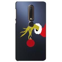 Зимние Чехлы для Нокиа 6 (2018) - прозрачный фон - Гринч с игрушкой