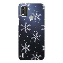 Зимние Чехлы для Нокиа С21 Плюс - прозрачный фон - Белые снежинки