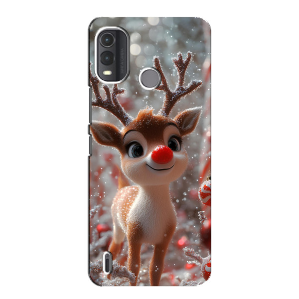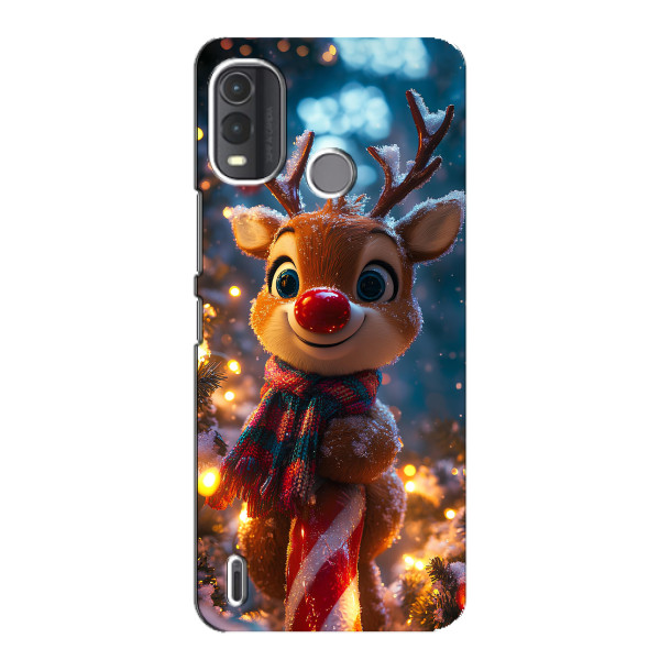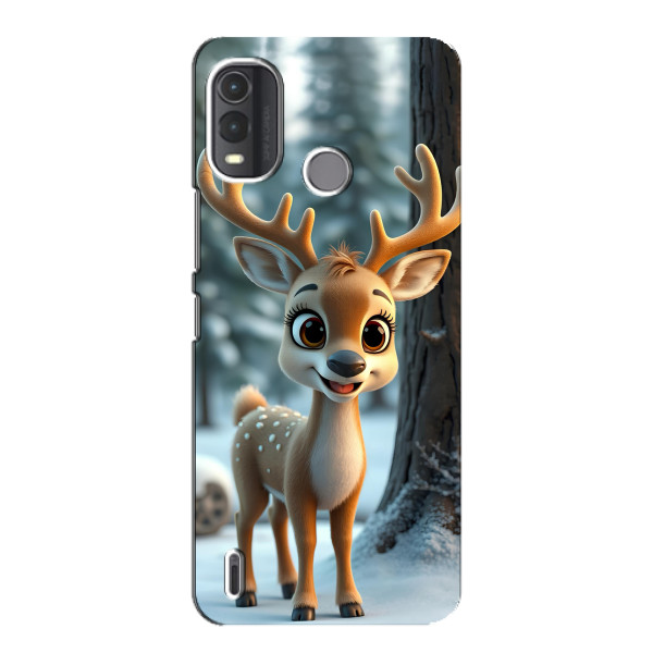 Зимняя коллекция принтов с тёплым сказочным настроением: Блестящий оленёнок, Олень в свитере, Олень с носом, Олень с шарфом, Олень среди подарков, Оленёнок в лесу, Оленёнок среди гирлянд, Оленёнок — выбери свой любимый дизайн для Nokia G11 Plus (Нокиа G11 Плюс) и добавь праздничной магии каждый день.