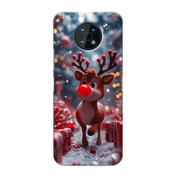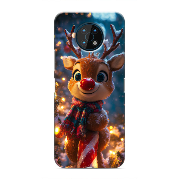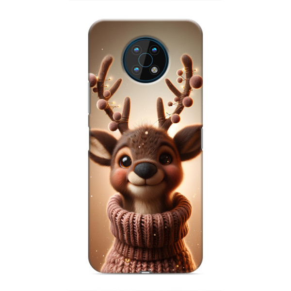Зимняя коллекция принтов с тёплым сказочным настроением: Блестящий оленёнок, Олень в свитере, Олень с носом, Олень с шарфом, Олень среди подарков, Оленёнок в лесу, Оленёнок среди гирлянд, Оленёнок — выбери свой любимый дизайн для Nokia G50 (Нокиа G50) и добавь праздничной магии каждый день.