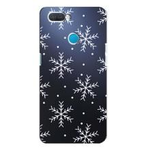 Зимние Чехлы для Оппо А12 - прозрачный фон - Белые снежинки