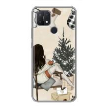 Рождественские, Праздничные Чехлы для Оппо А15 - Девушка с елкой