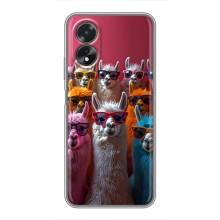 Чехол с принтом стильные животные для Оппо А18 - Ламы в очках