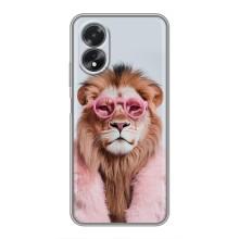Чехол с принтом стильные животные для Оппо А18 - Лев в очках