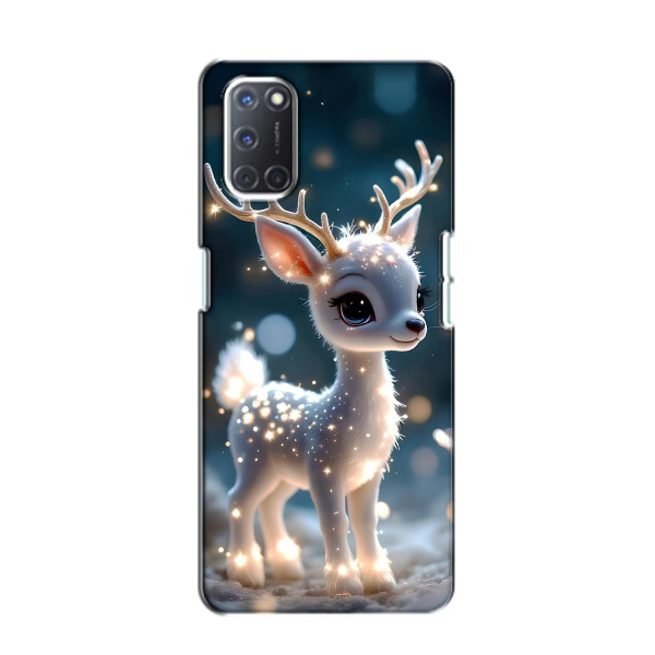 Зимняя коллекция принтов с тёплым сказочным настроением: Блестящий оленёнок, Олень в свитере, Олень с носом, Олень с шарфом, Олень среди подарков, Оленёнок в лесу, Оленёнок среди гирлянд, Оленёнок — выбери свой любимый дизайн для Oppo A52 (Оппо А52) и добавь праздничной магии каждый день.