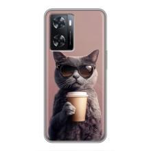 Чехол с принтом стильные животные для Оппо А57с - Кот с кофе