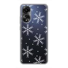 Зимние Чехлы для Оппо А78 - прозрачный фон - Белые снежинки