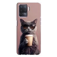 Чехол с принтом стильные животные для Оппо А94 - Кот с кофе
