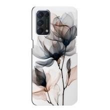 Чехол с цветочным принтом на Оппо Ф19 - Цветы на белом