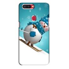 Новогодние Чехлы для Оппо Рено Р11с (VPrint) - Снеговик на лыжах