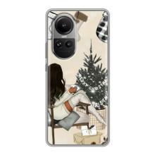 Рождественские, Праздничные Чехлы для Оппо Рено 10 Про - Девушка с елкой