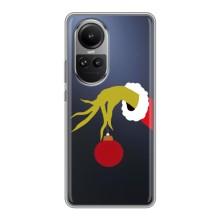 Зимние Чехлы для Оппо Рено 10 Про - прозрачный фон - Гринч с игрушкой