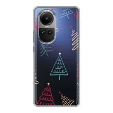 Зимние Чехлы для Оппо Рено 10 Про - прозрачный фон - Рождественские елки