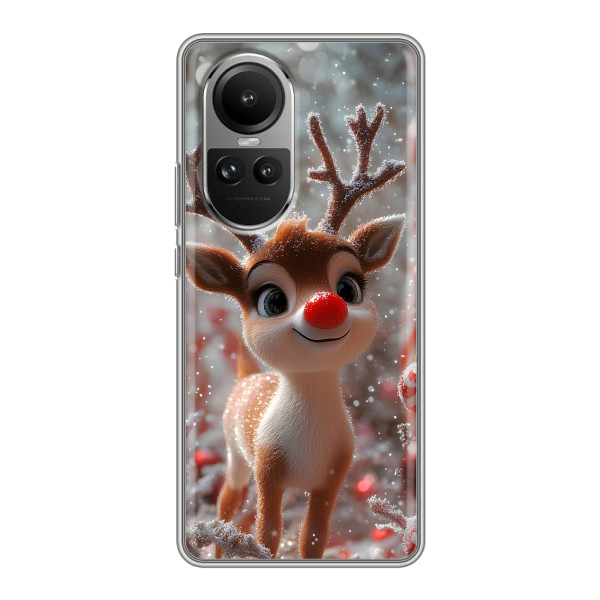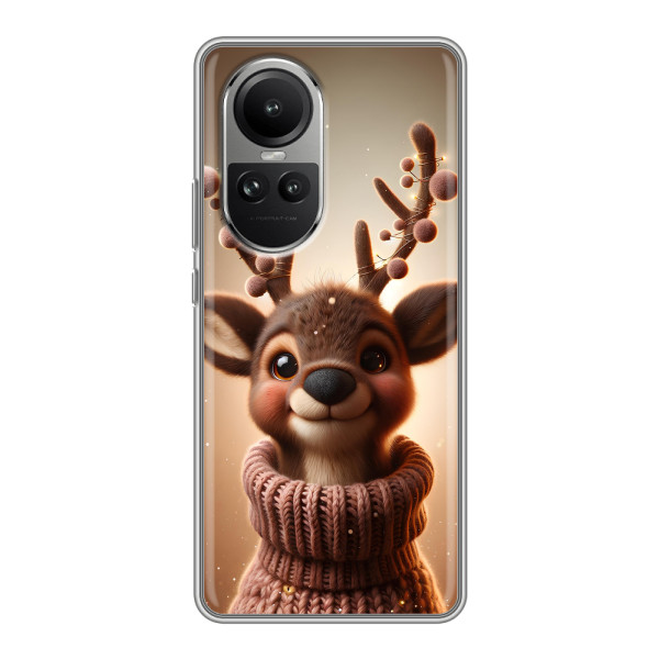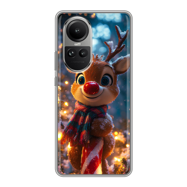 Зимняя коллекция принтов с тёплым сказочным настроением: Блестящий оленёнок, Олень в свитере, Олень с носом, Олень с шарфом, Олень среди подарков, Оленёнок в лесу, Оленёнок среди гирлянд, Оленёнок — выбери свой любимый дизайн для Oppo Reno 10 (Оппо Рено 10) и добавь праздничной магии каждый день.